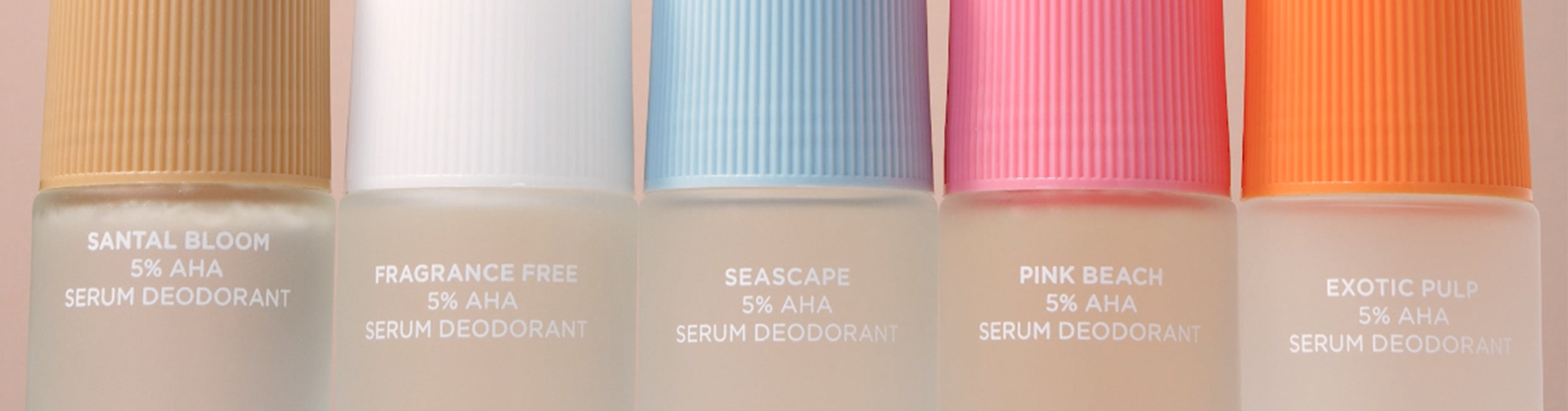 This clear, fast-drying formula is available in our best-selling Saltair scents - Santal Bloom, Pink Beach, Exotic Pulp, and Seascape. There is also a fragrance free serum deodorant option for those who prefer an unscented deodorant. Our AHA deodorant is a great option for those who want an alternative to salicylic acid such as those who are pregnant or breastfeeding.
